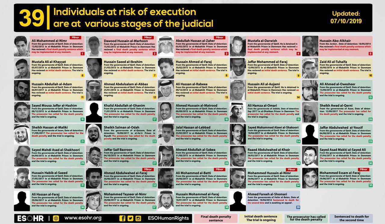 بحسب معطيات الحاجي، عدد أحكام الإعدام في السعودية أكثر بكثير ممّا يُنشر، غير أنه ينبّه الى أن أكثر المعتقلين المهدَّدين بالإعدام هم علي النمر وعبد الله الزاهر وداود المرهون الذين يُواجهون أحكامًا قديمة دخلت حيّز النفاذ لكنها توقفت بفعل الضغط الحقوقي والدولي.