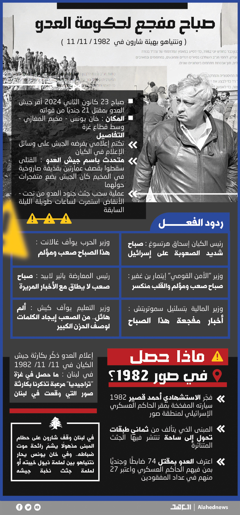 إعلام العدو ذكّر بكارثة جيش الكيان في 11/ 11/ 1982 في لبنان: ما حصل في غزة "تراجيديا" مرعبة تذكرنا بكارثة صور التي وقعت في لبنان