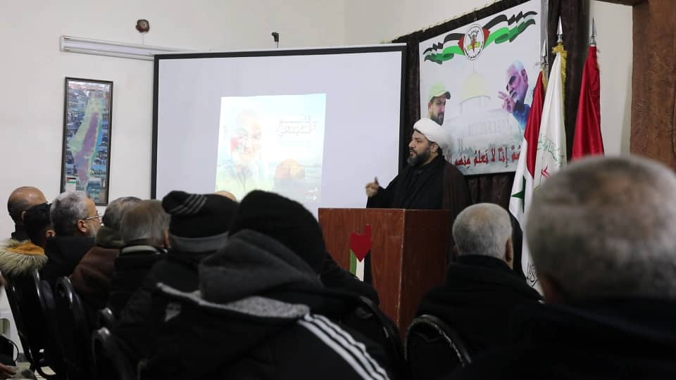 اقيم في مركز القدس الثقافي بمخيم العائدين بحمص، وبحضور ممثلين عن الفصائل الفلسطينية والفعاليات المحلية في حمص مهرجان خطابي تكريما للشهيد القائد قاسم سليماني وتاكيدا على أهمية الدور الذي قدمه للقضية الفلسطينية ومحور المقاومة.