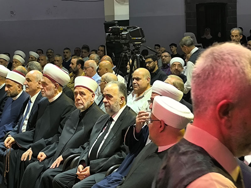 وفد كبير من علماء دمشق وريفها يتقدّمهم وزير الأوقاف السوري الدكتور محمد عبد الستار السيد جاء لتقديم واجب العزاء. واعتلى الوزير السيد المنبر خاطبًا في فضائل سيد المقاومة الذي حقق ما كان يصبو إليه من نيل وسام الشهادة التي سعى إليها فما خاب منه الرجاء.